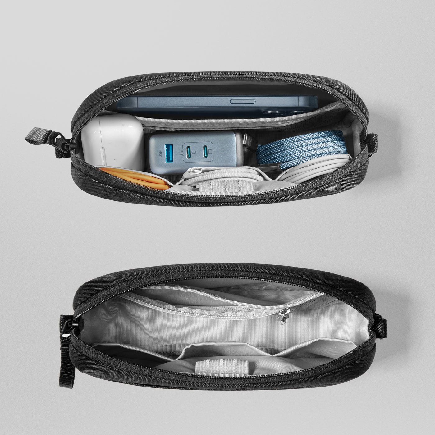 Designed with smart compartments to neatly store chargers, cables, power banks, and small devices.