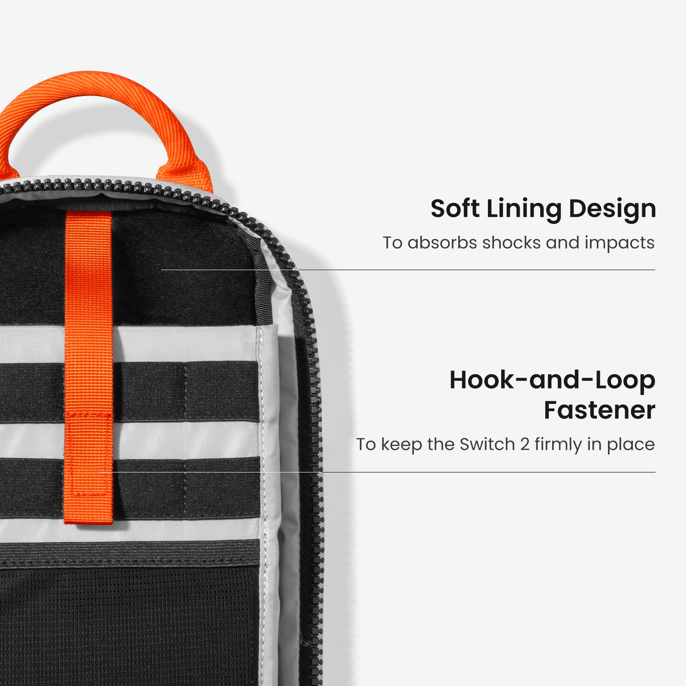The special compartment is designed with a soft, protective lining that gently cradles your Switch 2, preventing scratches and damage to the screen while keeping it safely in place.